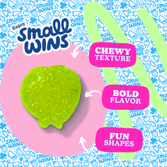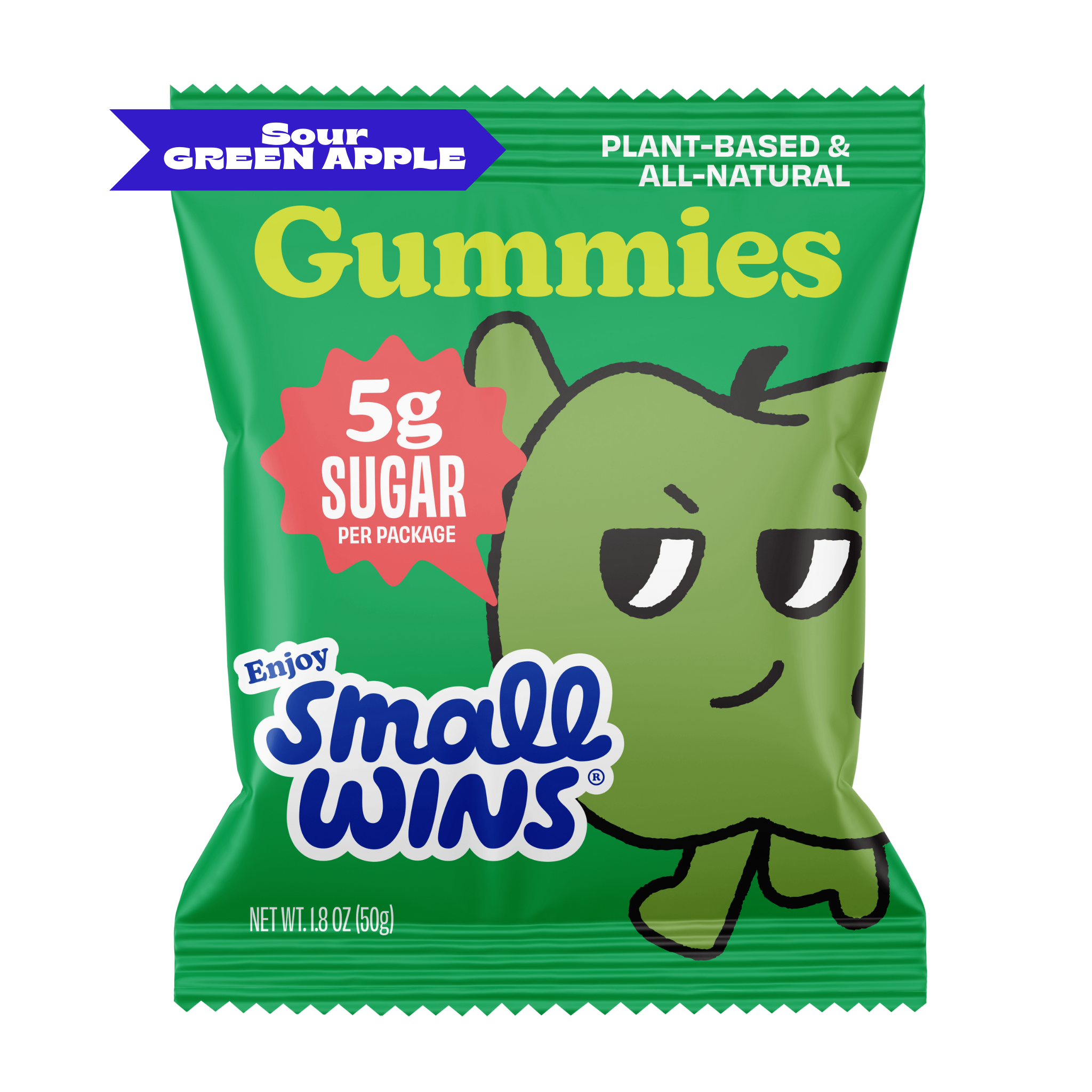 Pucker up! These sweet and sour green apple gummies help you take happiness into your own hands! Perfect as an afternoon treat or for sharing with a friend. Whatever life throws at you, eating Small Wins green apple gummies make things a little sweeter.